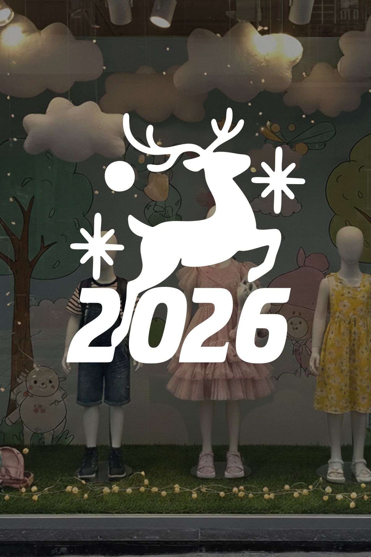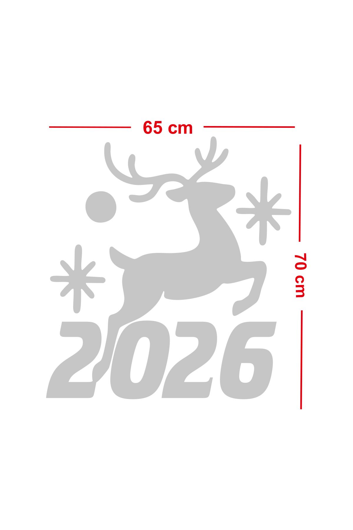 Geyikli 2026 Yılbaşı Vitrin Sticker - Mağaza Cam Süsleme
