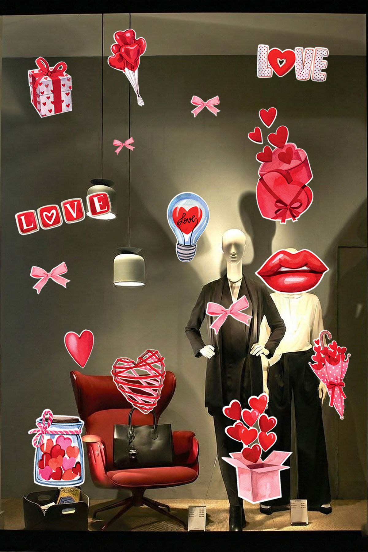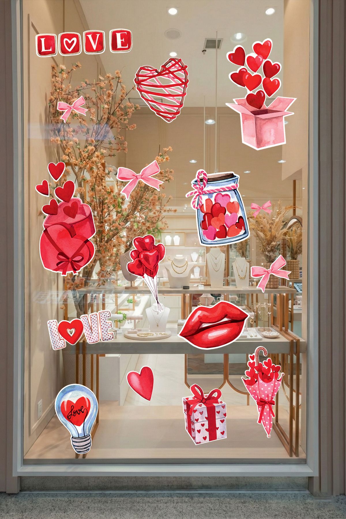 Sevgililer Günü ruhunu bulunduğu ortama taşıyarak sıcak ve romantik bir ambiyans oluşturur. Vitrin ve yaşam alanlarında dikkat çekici bir etki sağlar.