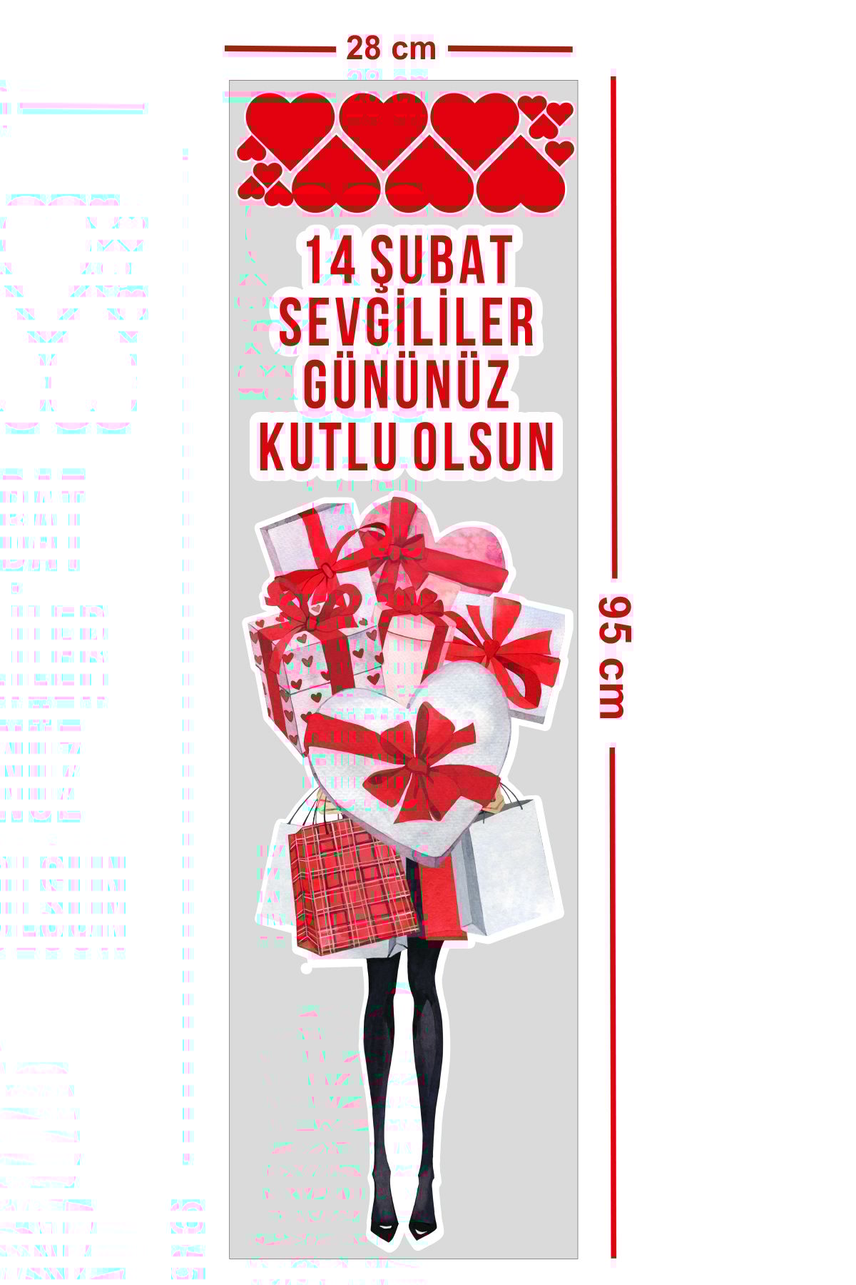 Sevgililer Günü'nde özel anlarınızı süslemek için ideal olan bu kalp tasarımlı sticker, 28x95 cm boyutundadır. Folyo malzemesi ile uzun ömürlü kullanım sunarken, kendinden yapışkanlı olması, uygulama sırasında kolaylık sağlar. Her türlü düz yüzeyde kullanılabilir.