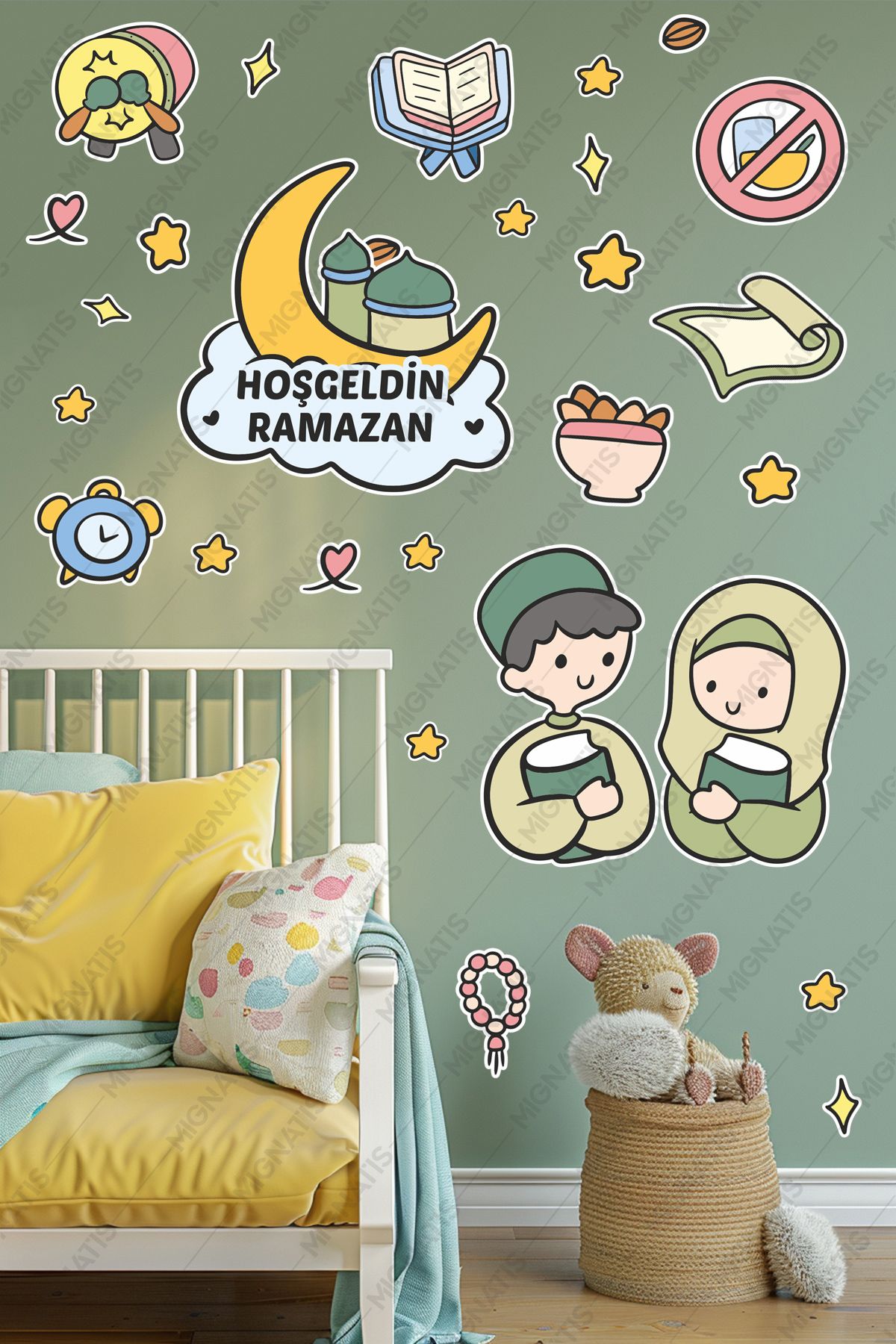 Bu özel Ramazan temalı sticker seti, çocuk odalarınızı şenlendirmek ve Ramazan ayının neşesini yansıtmak için tasarlanmıştır. İçerisinde birbirinden sevimli figürler ve yıldızlar bulunan bu set, kolayca uygulanabilen yapışkanlı stickerlardan oluşmaktadır.
