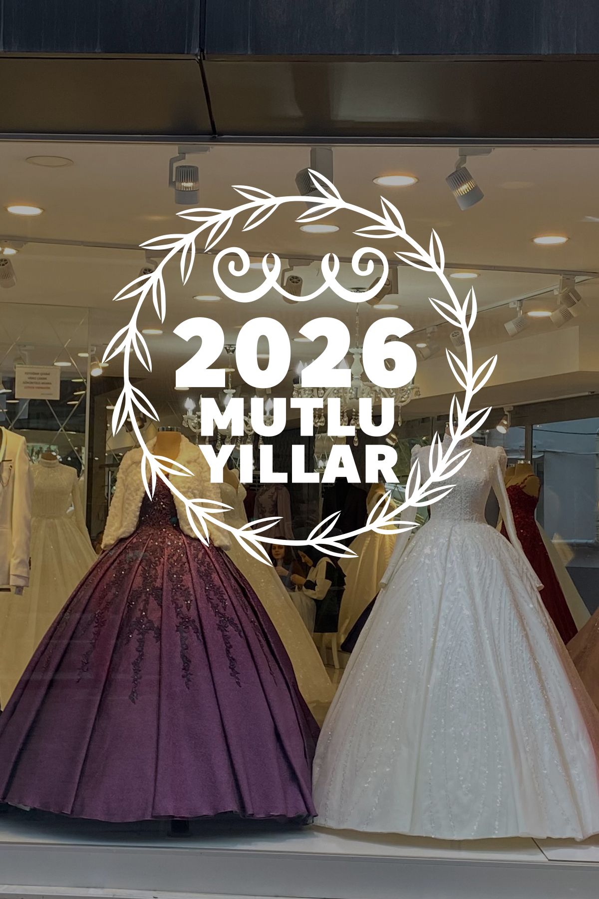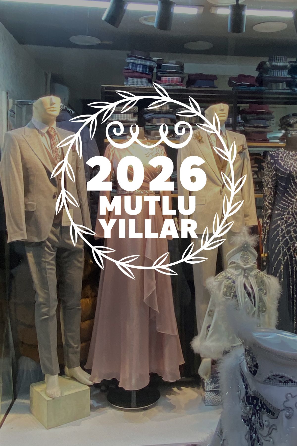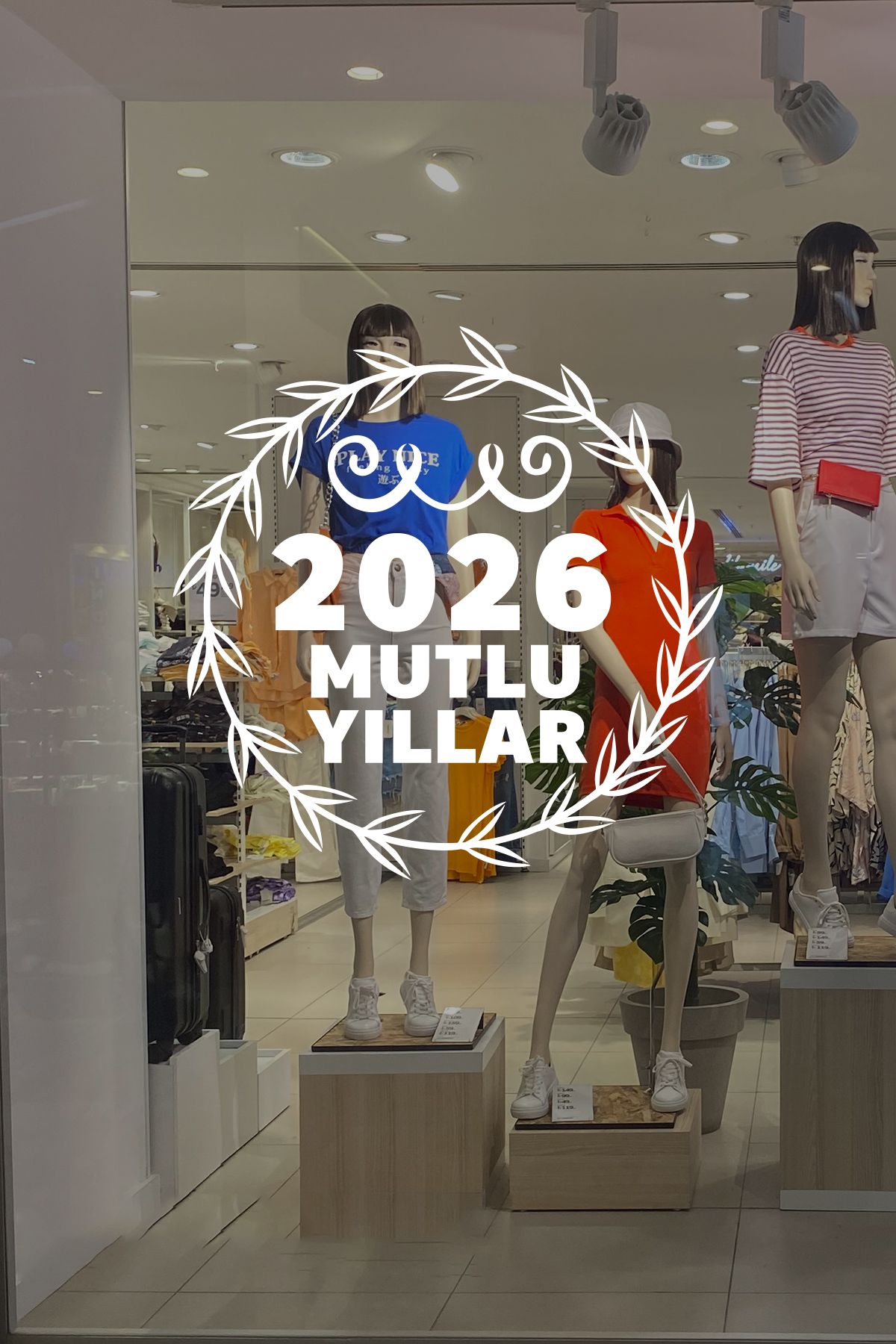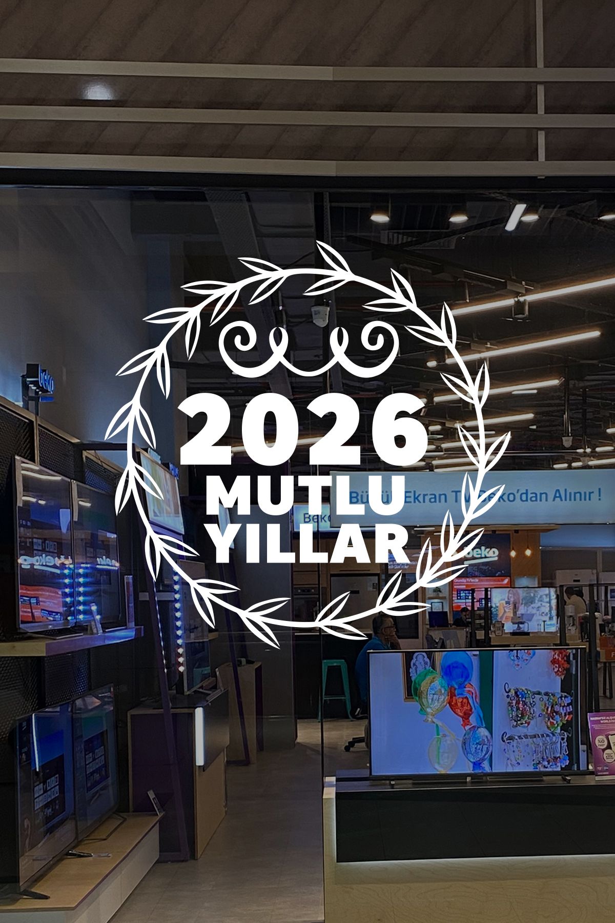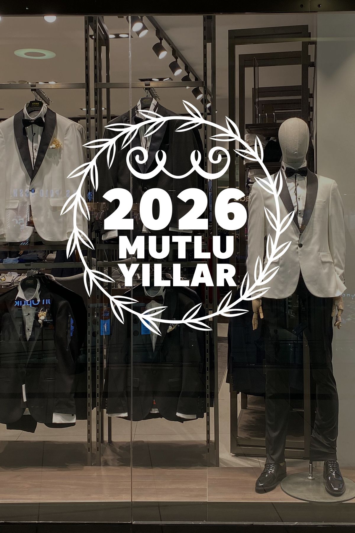 2026 Mutlu Yıllar yazısıyla tasarlanan bu sticker, modern ve estetik bir görünüm sunarak yılbaşı dekorunuza zarif bir dokunuş katar.