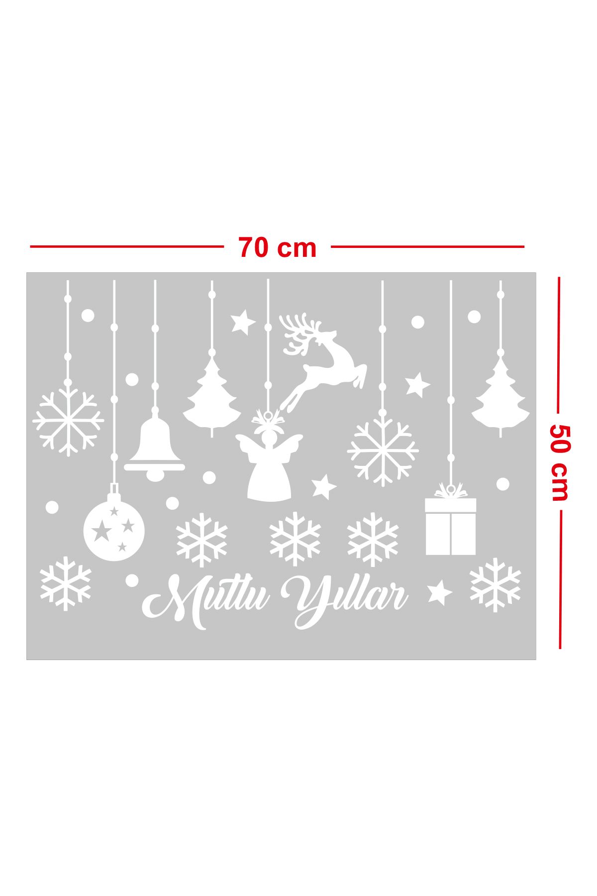 Mutlu Yıllar Yazısı Kar Taneleri ve Kutular Balonlar Vitrin Stickerları 70x50cm, yeni yıl kutlamalarınıza şıklık katacak harika bir üründür. Renkli ve dikkat çekici tasarımı ile her mekanın atmosferini güzelleştirir. Kolay uygulanabilir stickerlar, her türlü parti ortamına uyum sağlar.